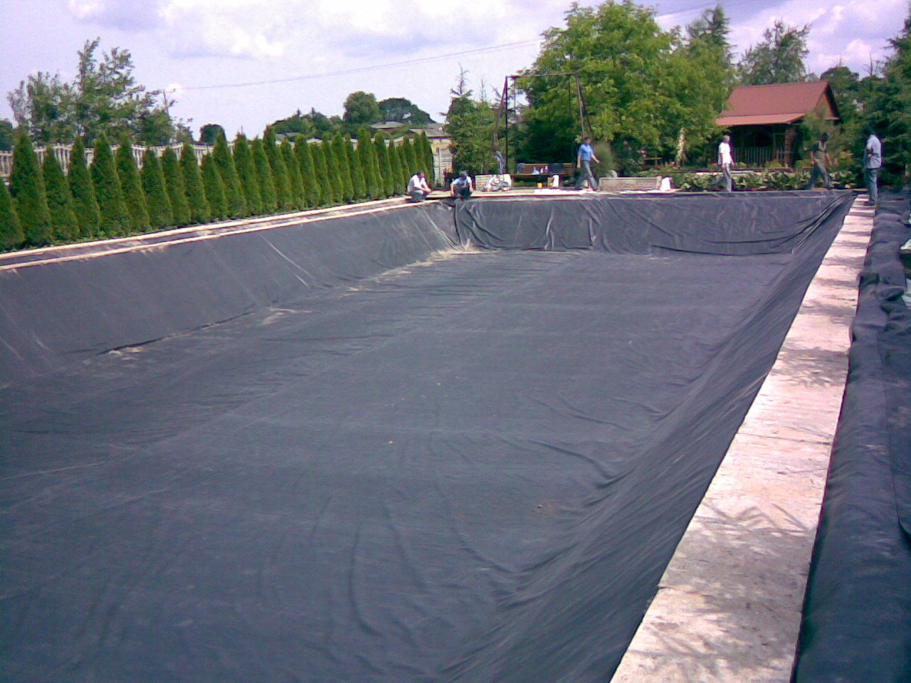 Nasza geomembrana / folia do oczek wodnych jest niezwykle elastyczna, dzięki czemu idealnie układa się do kształtu wykopu, a zakładki po zalaniu zbiornika wodą są praktycznie niewidoczne.